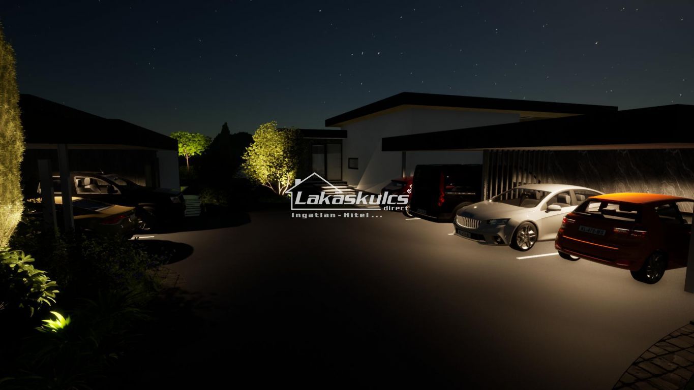 2db fedett kocsibeálló és 12-15m2-es külső tároló.